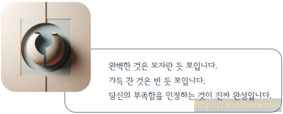 - 역설적 완벽함: 노자는 다섯 가지 역설적 대비를 통해 도(道)의 완전함을 설명합니다. 진정으로 크고 완전한 것은 완벽하게 채우거나 드러내지 않고, 오히려 부족하고, 비어있고, 서툰 듯한 모습(若缺, 若沖, 若拙)을 취하여 오래도록 변질되지 않고 다함 없이(不弊, 不窮) 지속됩니다.