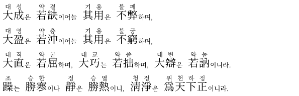 (@) 第45章 大成若缺 가장 완전한 것은 흠이 있는 듯 보이고, 가장 풍요로운 것은 빈 듯 보인다.
