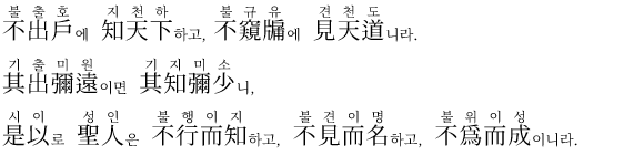 (@) 第47章 不出戶牖 문을 나가지 않고 천하를 알며, 밖으로 보지 않고 도를 안다.