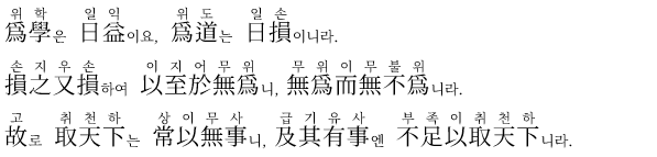 (@) 第48章 爲道日損 배움은 날로 더해지고, 도는 날로 덜어내는 것이 본질이다.