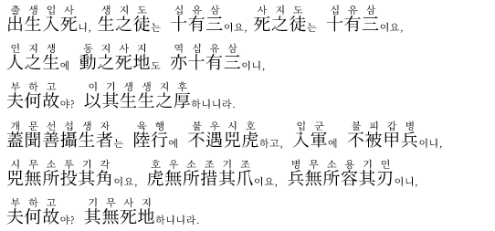 第50章 生之徒也 삶과 죽음의 문턱에서 도를 지키는 자는 위험을 피한다.
