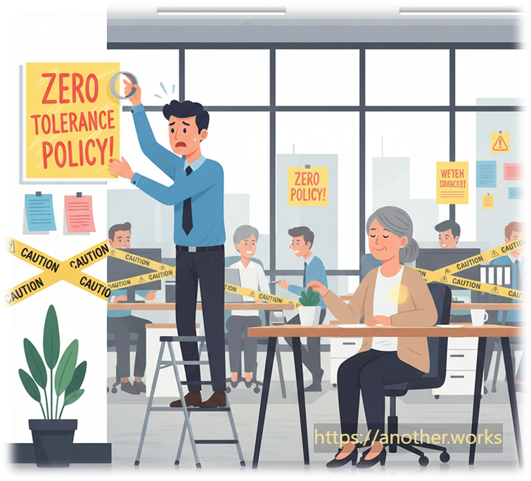 More policies, more KPIs, more surveillance. Full control! - Colleague B: Whoa… more rules usually just create more loopholes—and more headaches.