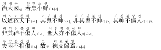 '도'로써 천하에 임하면, 그 '귀신'은 신령스럽게 작용하지 않는다.