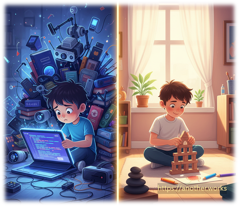 - Parent A: I’m signing my kid up for six academies, starting coding at five, and teaching three languages.