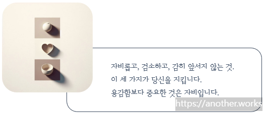 - 삼보의 실천: 이 세 가지 보물을 버리고 역행하는 것은 필연적인 죽음을 초래합니다. 특히 자비는 싸움에서는 승리를, 수성(守城)에서는 굳건함을 보장하며, 하늘의 보호까지 받는 근본적인 덕목입니다.