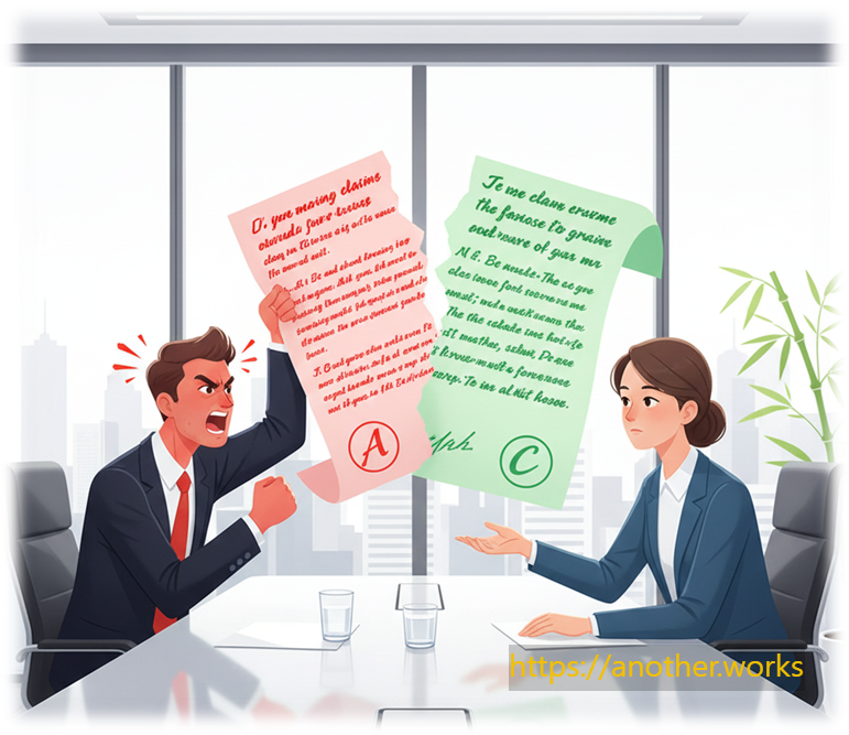 [Scene] 두 회사가 법적 분쟁 끝에 합의했지만, 승소한 쪽(A)이 패소한 쪽(B)에게 계속해서 압박을 가하자, 법률 고문(C)이 노자의 가르침을 조언합니다.