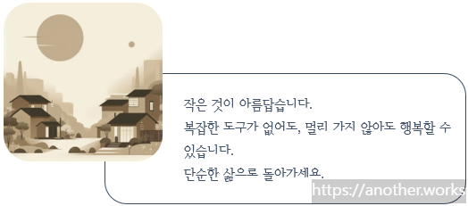 - 復結繩而用之(부결승이용지) : 단순한 방식으로 돌아감 / 복잡함을 덜어냄