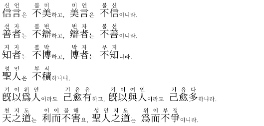 (@) 第81章 利而不害 진실한 말은 꾸밈이 없고, 성인은 베풀수록 더욱 많아지며 다투지 않는다.