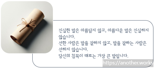 '진실한 말'은 아름답지 않고, '아름다운 말(꾸민 말)'은 진실하지 않다.